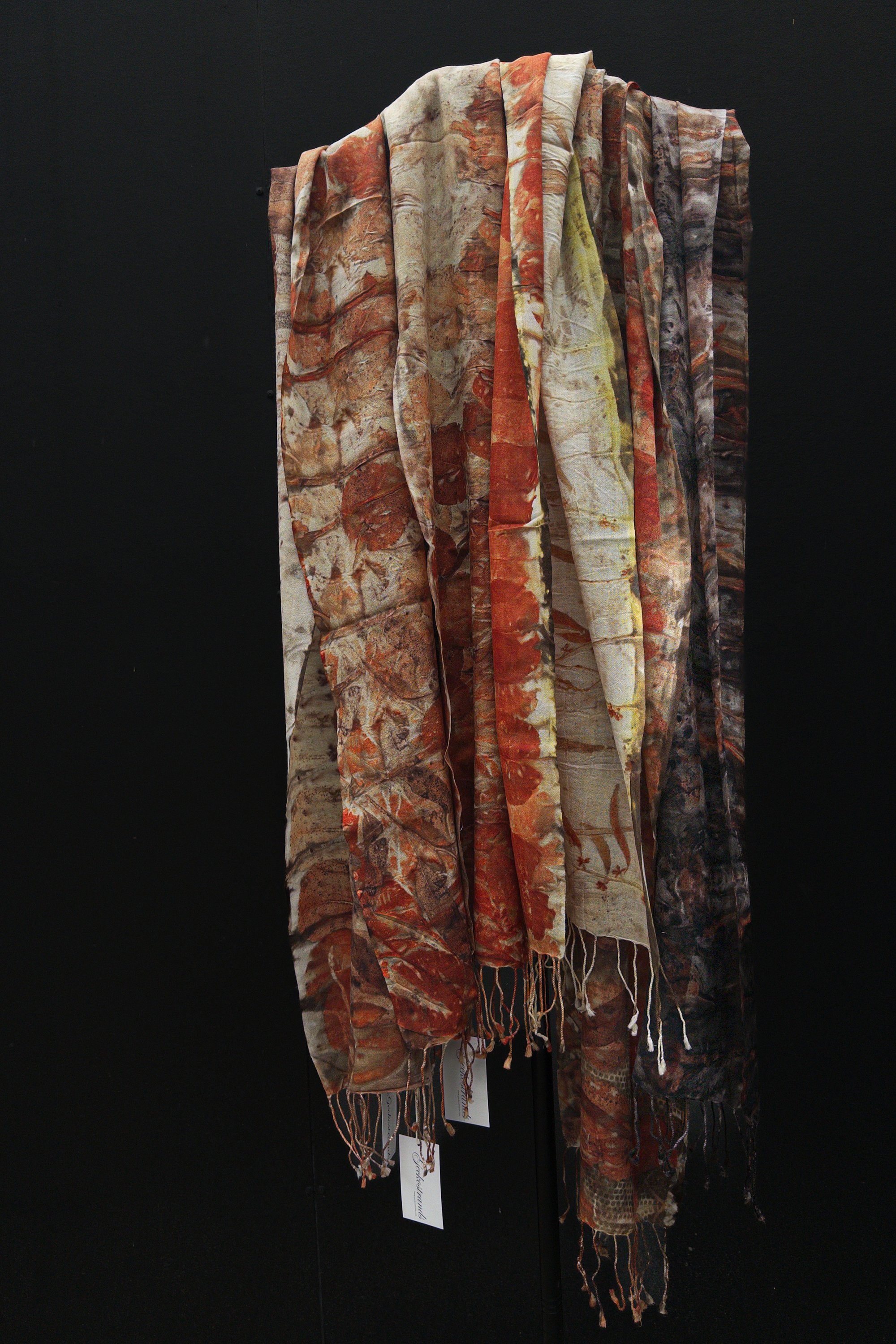The scarf colour in the images reflect the earthy tones of nature, some with defined leaves and some contrasting shades you can choose between creams, browns and orange or some with greys, charcoal and blacks.