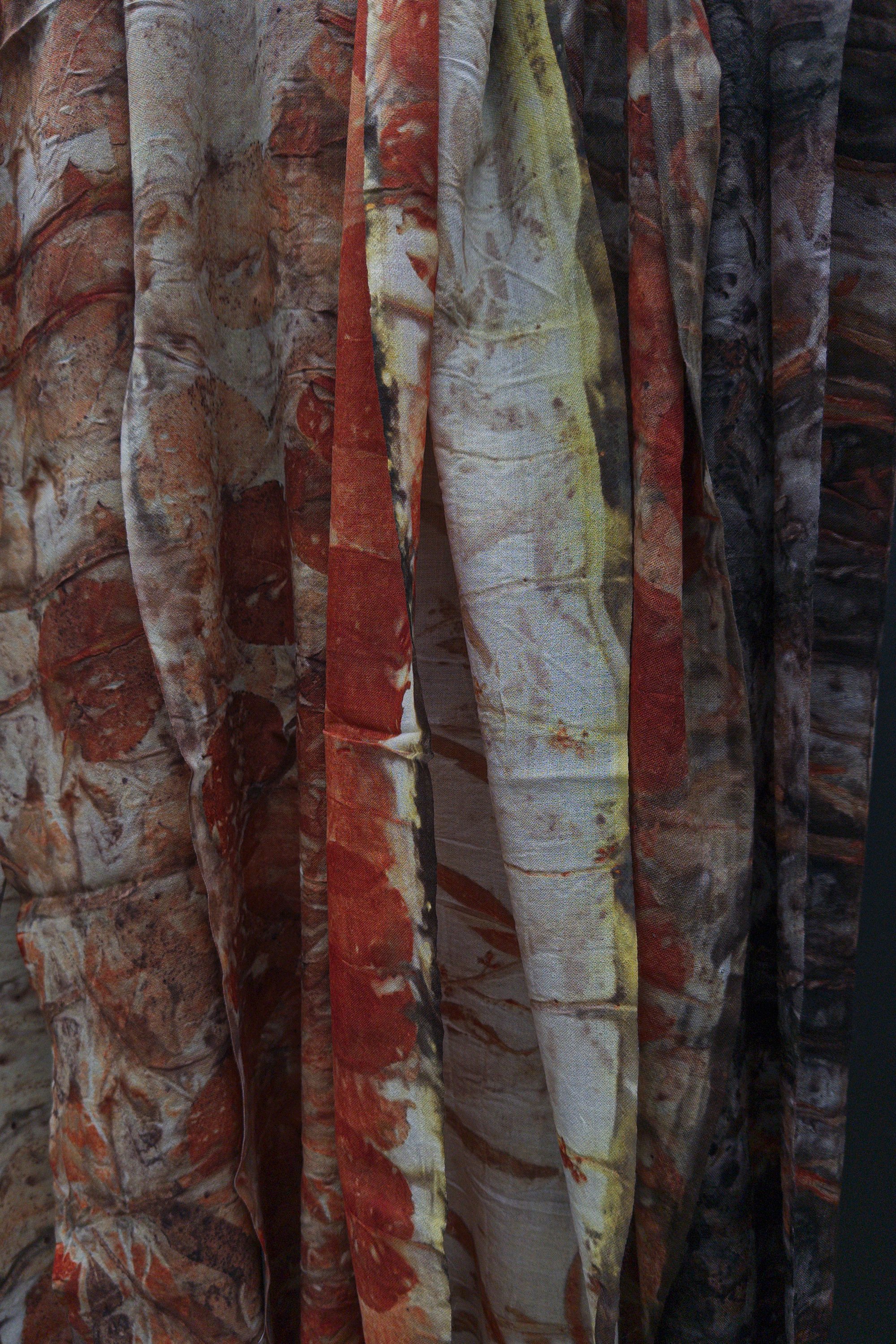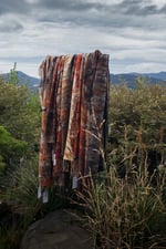170 x 33cm ,70% fine wool, 30% cashmere summer weight scarves hand crafted and eco dyed using Tasmanian eucalypts.